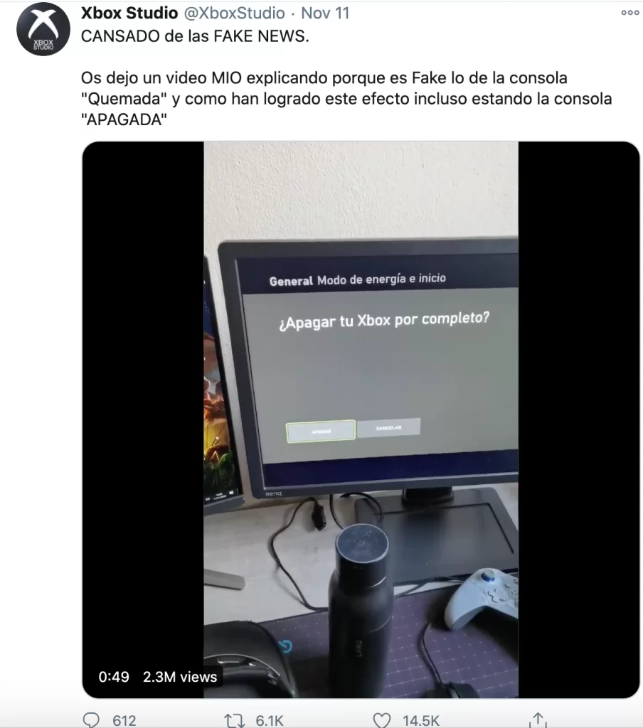 “TIRED of the FAKE NEWS. I leave you a MIO video explaining why the “Burned” console is Fake and how they have achieved this effect even with the console “OFF”.