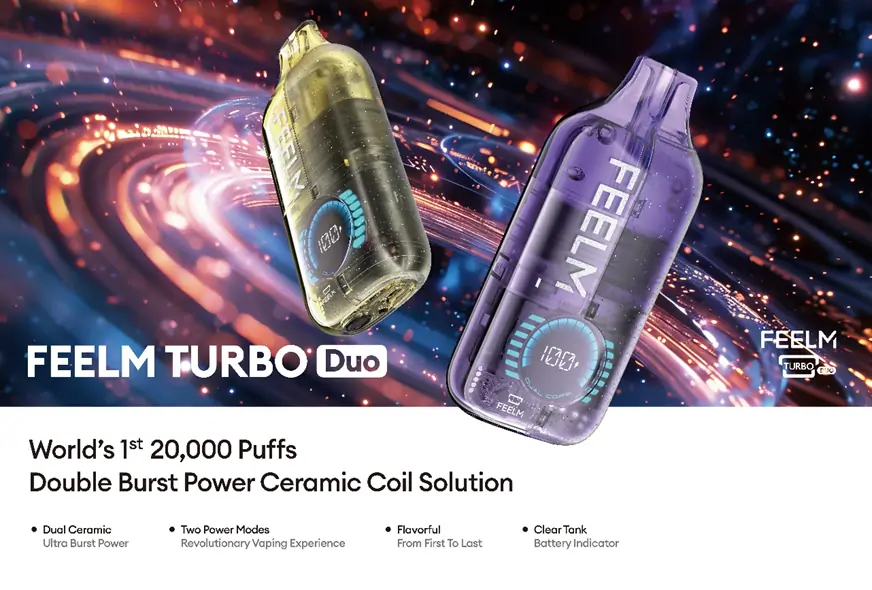 Additionally, the world’s first 20,000 puffs double burst power ceramic coil solution “FEELM Turbo DUO” continues the high explosiveness of the FEELM Turbo series, doubling the flavor explosiveness with dual ceramic coils. This allows you to be amazed by the beautiful experience brought by burst power again. Moreover, the setting of 2 different power modes has become one of the highlights of this innovative “+” solution.