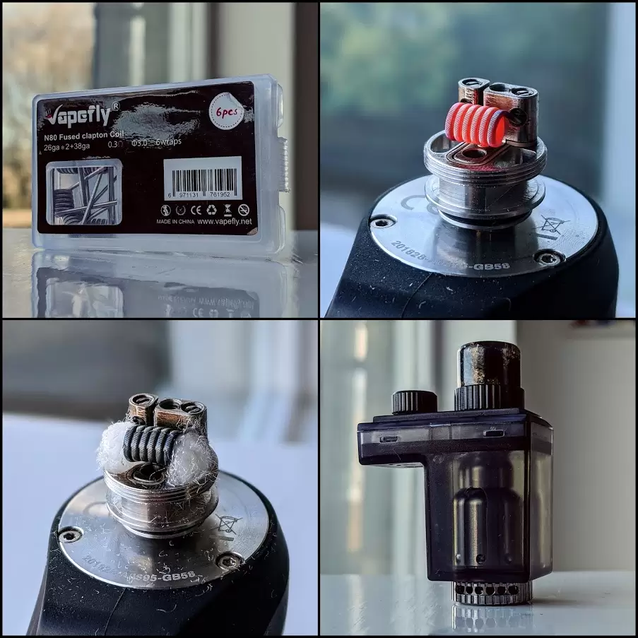As a result of this, I’ve been using the XS solely for direct lung vaping and have been mightily impressed. With side airflow opened about halfway and the airflow ring fully open, the XS competes with the very best devices on the market in terms of flavour output and has a relatively quiet, smooth draw. I’ve personally enjoyed it most with dual core fused Clapton builds, between 35W-40W but there’s certainly some wiggle room there for smaller or larger builds, depending on how much you open or close the side airflow screw.